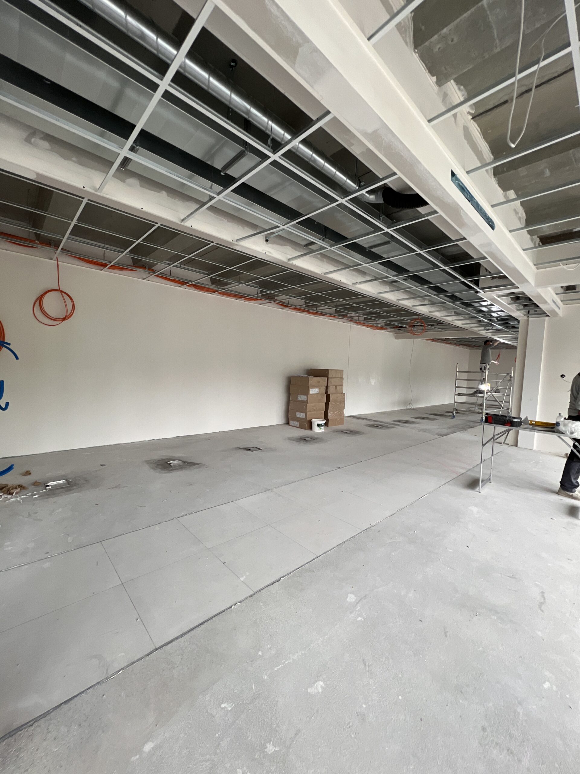 Erstellen von Deckenschürze und Trockenbauwände für bauseitige Glastrennwände.